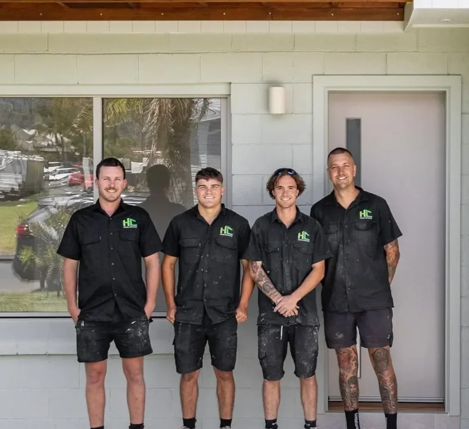 Logo with large green letters 'HC' and the text 'Building and Construction' below in white.