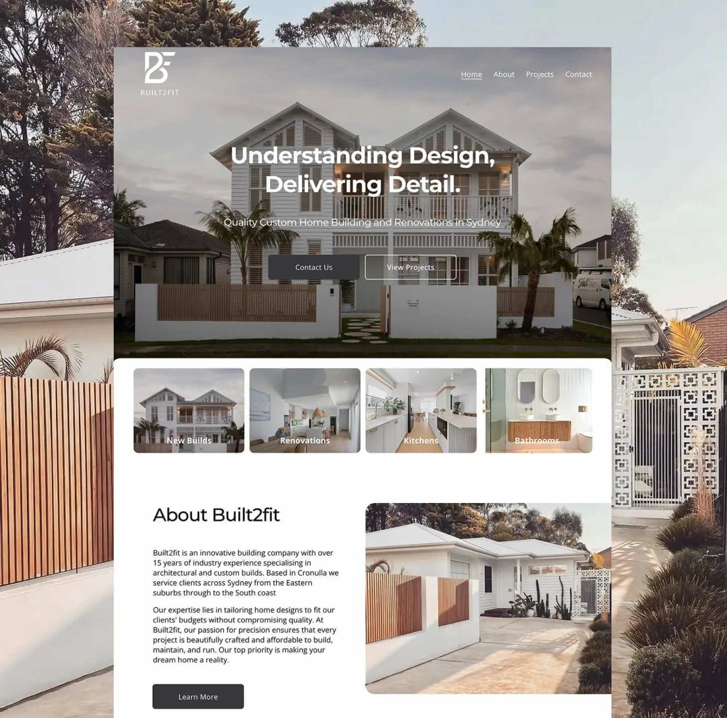 Built2Fit is a Sydney-based building company specialising in architectural homes, renovations, kitchens, and bathrooms. They already had a website in place, but it had been built using a DIY platform and did not reflect the level of experience, quality, or professionalism they delivered on-site.
