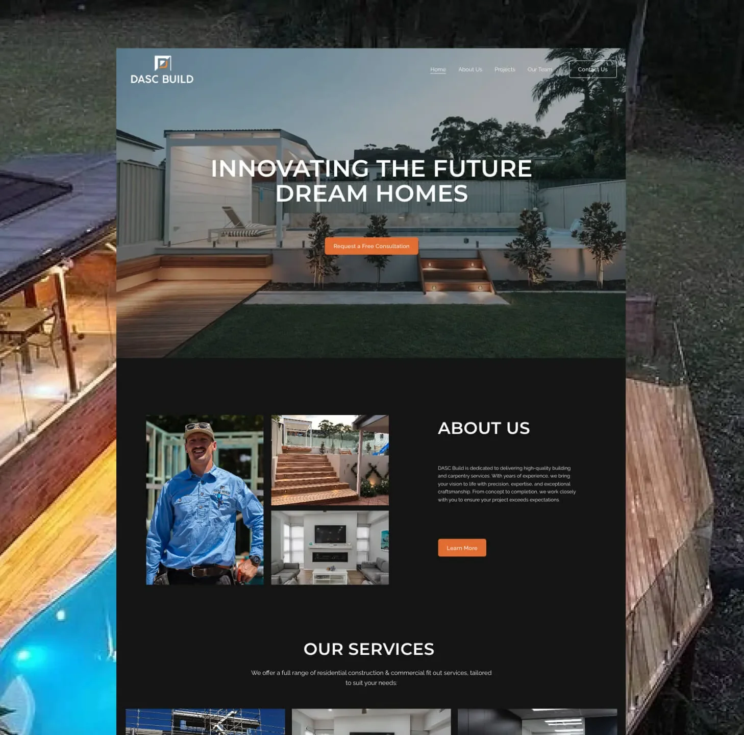 While DASC Build had strong on-site capability and project photography, there was no organised way to present this work professionally online. Visitors could not easily review past projects, understand the full scope of services, or build confidence before reaching out. There was no portfolio system, no clear About or Team structure, and no foundation that could support ongoing growth. The business needed a digital platform that would organise their work, present their brand clearly, and support credibility before enquiries.