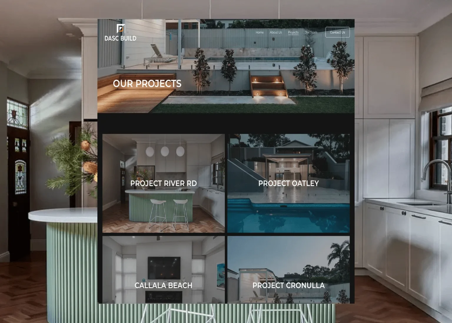 The project gallery was designed as the core of the website, giving visitors a clear, structured way to review completed work and assess the quality and scope of projects delivered. About and Team sections were carefully structured so potential clients can quickly understand who they are engaging with and what DASC Build offers, without needing to interpret vague or fragmented information. The website was built as a working business asset. Every page, section, and layout decision supports clarity, credibility, and long-term use as the business continues to grow.