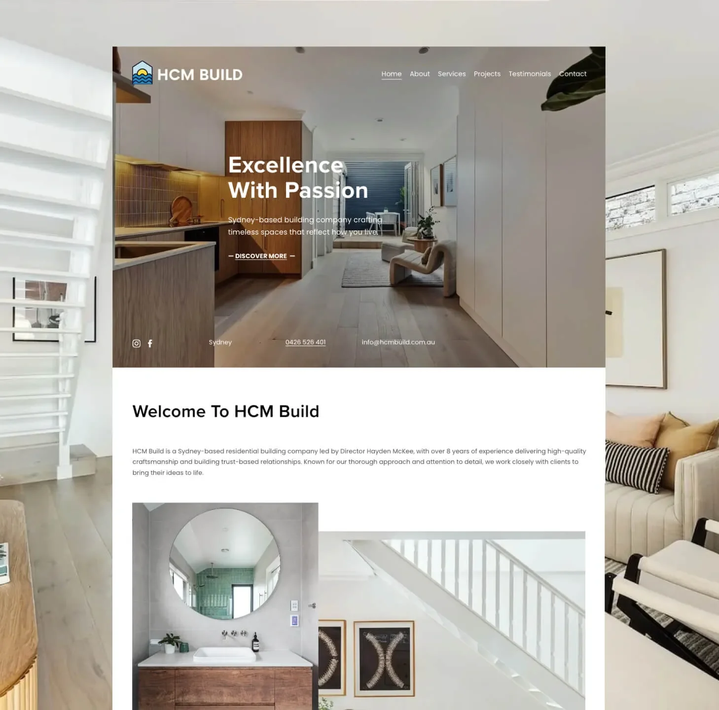 HCM Build is led by Director Hayden McKee, a Sydney builder with a growing body of quality residential work. The craftsmanship was there. Client feedback was strong. The issue was perception. The previous website did not reflect the business properly. Visual presentation was weak, project work lacked structure, and the overall experience reduced confidence rather than reinforcing it. The brief was not about marketing noise. It was about correction. Build a website that accurately represents the quality of work, supports trust, and gives serious clients a reason to take the business seriously.
